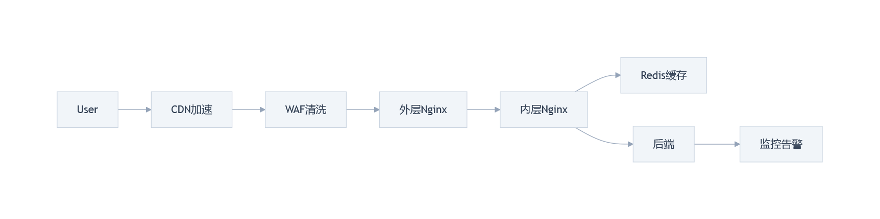 With the current trend toward containerization and microservices, a single gateway struggles to effectively manage traffic governance and business decoupling. The dual Nginx architecture achieves separation of duties and fault isolation through a layered structure consisting of an outer gateway (SSL offloading, rate limiting, access control) and an inner containerized Nginx (business routing, static services).