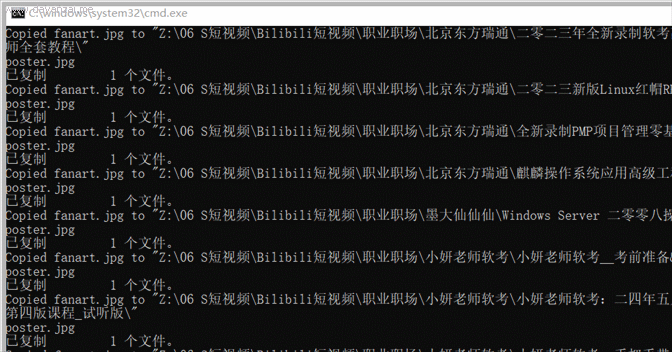Recently, I used a third-party downloader to download a lot of Bilibili videos to pass the time. The resources are quite complete, including subtitles, barrage, nfo, video files and poster images (see Figure 1 below). The only drawback is that there is no fanart cover image. Because poster.jpg files are all widescreen, simply copy all poster.jpg images and rename them to fanart.jpg to use as widescreen covers. What's more troublesome is that the video files are all stored in the third-level directory of "Category-up Main-Video Name" (see Figure 1 below), and there are a large number of them, so we can only try to complete them in batches through scripts.