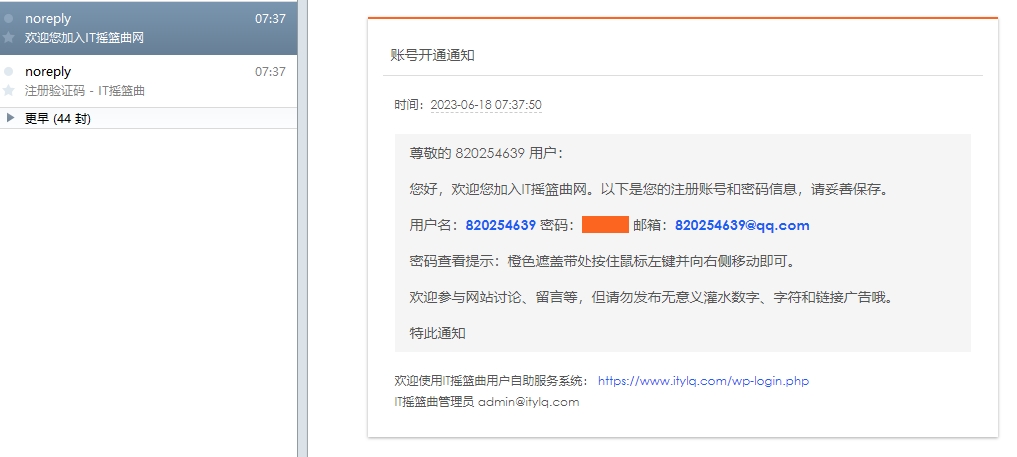 </p><p>Welcome to the IT Lullaby user self-service system: <a href="https://www.itylq.com/wp-login.php" target="_blank" rel="noopener" style="color: rgb(28, 96, 243); text-decoration: none;">https://www.itylq.com/wp-login.php</a></p><span style="color: rgb(85, 85, 85); font-size: 9pt; background-color: rgba(0, 0, 0, 0);">IT Lullaby Administrator</span><span style="font-size: 9pt;"> </span><a href="mailto:admin@itylq.com " style="font-size: 9pt; color: rgb(28, 96, 243); text-decoration: none;">admin@itylq.com </a><span style="color: rgb(85, 85, 85); font-size: 9pt; background-color: rgba(0, 0, 0, 0);"> (If the account is blocked by mistake or you have any objection to the account deactivation, please provide feedback through the administrator's email)</span><p></p>