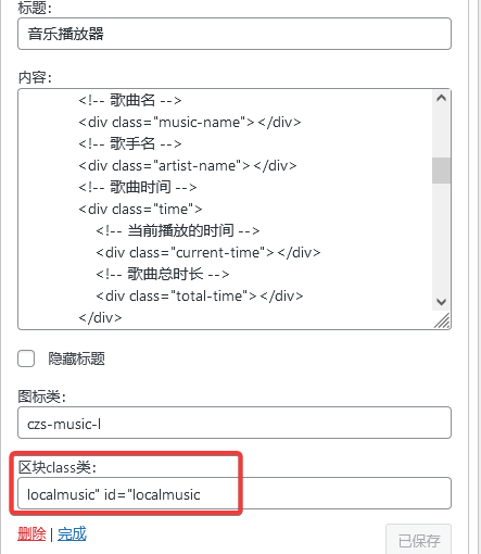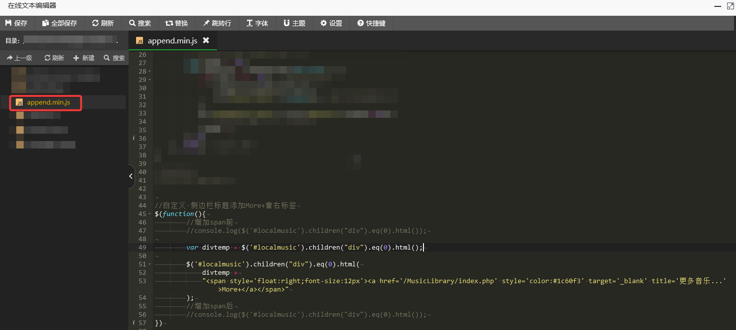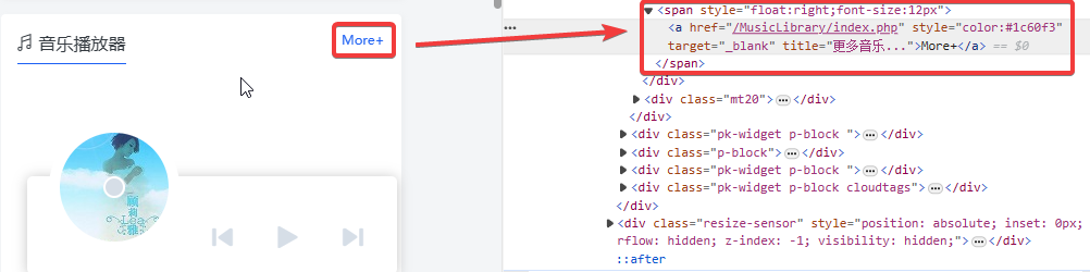jquery脚本获取<div>子节点内容并增加<span>标签:以侧边栏标题增加More+更多内容跳转链接为例¶ 原文链接: https://www.itylq.com/jquery-script-for-div-modification.html 发布日期: 2023-10-31 迁移时间: 2026-03-21 最近调整了下主页侧边栏,给“音乐播放器”、“标签云”和“友情链接”栏增加了“More+”更多内容的跳转快捷链接,本文简要记录下实现过程。 1 需求¶ 因为后台 Widget 各个小栏目的标题和内容都是用同一模板函数实现的,如果直接在模板函数上添加“More+”标签链接,会有两个问题,一是所有侧边栏小栏目都会有“More+”小尾巴,二是无法给不同小栏目的“More+”配置不同的跳转链接。 2 解决思路¶ 给不同小栏目设置 ID,通过 jquery 脚本抓取特定 ID 名称的 标签,获取 子节点下的内容,然后改写内容,增加一个 标签用来实现靠右对齐的“More+”快捷链接。 3 实现步骤¶ 1、后台修改“音乐播放器”子栏目类名,通过截断的方式给对应 标签巧妙的添加 ID: //默认只能设置 标签的 class 类名,可以通过 localmusic” id=”localmusic 进行构造 2、编写 jquery 代码,通过 ID 获取音乐播放器子栏目父 的内容,在获取的内容后增加 标签内容, 标签内嵌 标签,用于设置跳转链接: $(function(){ //增加span前 //console.log($('#localmusic').children("div").eq(0).html()); //调试用 var divtemp = $('#localmusic').children("div").eq(0).html(); $('#localmusic').children("div").eq(0).html( divtemp + "<span style='float:right;font-size:12px'><a href='/MusicLibrary/index.php' style='color:#1c60f3' target='_blank' title='更多音乐...'>More+</a></span>" ); //增加span后 //console.log($('#localmusic').children("div").eq(0).html()); //调试用 }) 3、本地测试无误后,添加到现有主题 js 文件中: //或者为了方便管理,单独建立一个 js 文件(比如本站的 append.min.js)专门用于边边角角的优化。 4、验证: 清除浏览器缓存,刷新网站首页,发现侧边栏音乐播放器标题右侧已增加了“More+”更多跳转链接,点击该链接,跳转到的链接正确无误。 本文由WordPress迁移至MkDocs 回到页面顶部